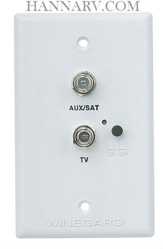 The Winegard RV-7542 TV/Satellite Jack Receptacle features dual jack inputs enabling you to receive satellite signals and off-air TV. It features a built-in 2-set splitter and a flush mount wall plate. It is white in color.