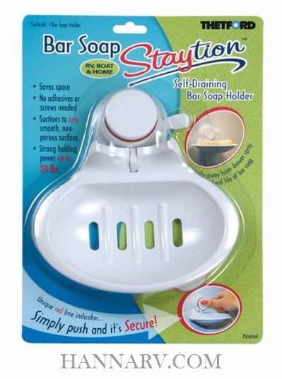 Never bend over to pick up soap again. The Thetford Bar Soap Staytion can be installed anywhere - without screws or adhesives - so soap is easy to reach.