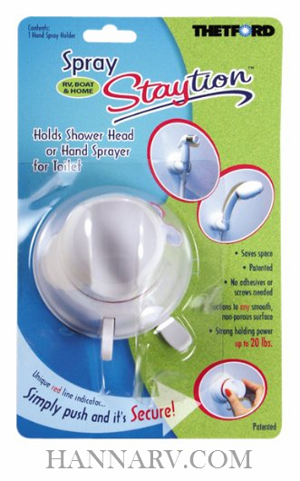 The Thetford Spray Staytion is perfect for your shower head or hand sprayer. It can be used indoors or out, and it provides the simple solution to hands-free showering.