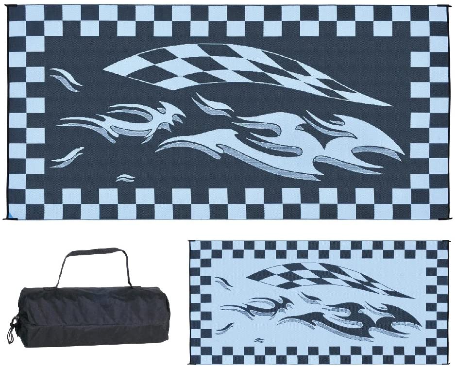 Chekered Flag Reversible RV Awning Patio Rug Mat - 8 x 16 Feet - Black/White