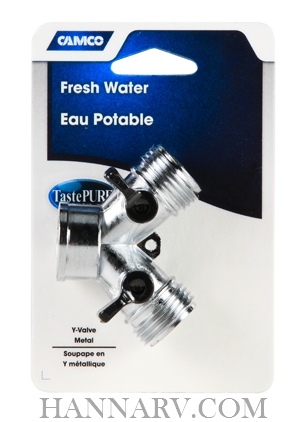 Control water flow with a quarter-turn pressure seated valve. The Camco 20113 Metal Garden Hose Y-style converts a single-line hose to two directions. Each side has valve controlled to easily adjust flow and pressure.