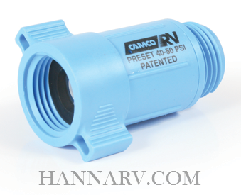 The Camco 40143 Water Pressure Regulator reduces water pressure to a safe and consistent 40-50 pounds of operational pressure. It is constructed of durable PVC. It measures 3/4 inch MGH x FGH.