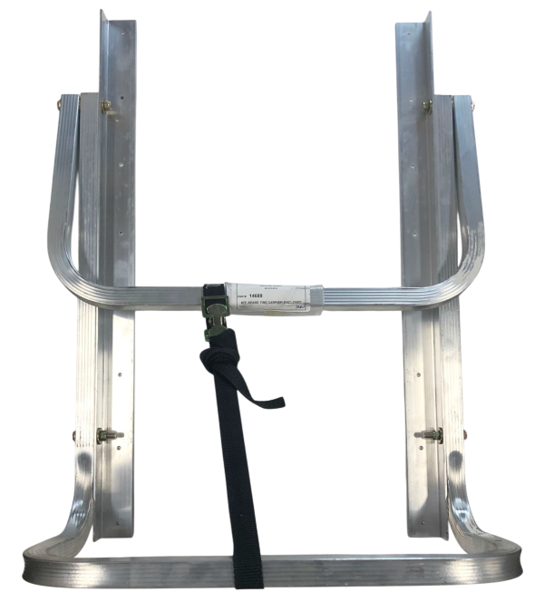 The Triton 14688 Enclosed Trailer Hoop Style Spare Tire Carrier Kit allows you to hold and carry your spare tire up and out of the way. It can be used on any trailer with 16 inch on center sidewall posts.