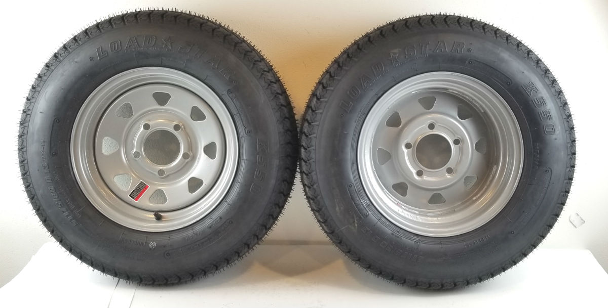 Load Star snowmobile trailer tires are mounted on powder coated wheels with a 5 on 4.5 bolt pattern. These are OEM replacement tire and wheel assemblies for Triton snowmobile trailers. These also work on many popular brands of snowmobile trailers as ST175/80 D13 replacement snowmobile trailer tires. This will fit popular brands like Triton, Floe, R & R, Karavan, Aluma, Mission, Worthington, Newmans, Sledbed and Loadmaster.