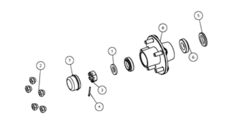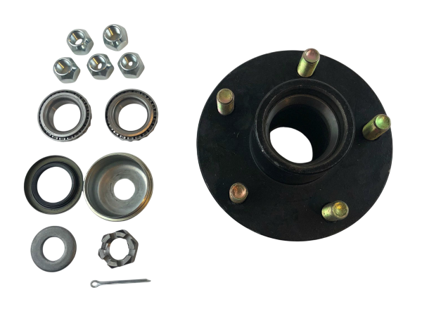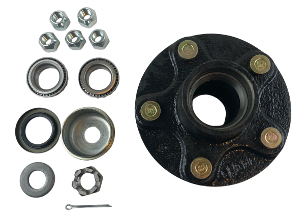 The Shorelander SS818 1-1/16 Inch x 1-1/16 Inch Hub and Bearing Kit with dust cap includes all of the items pictured in the product image. Bolt Pattern: 5 on 4-1/2.