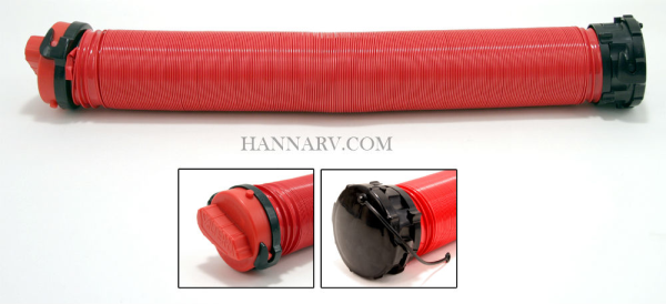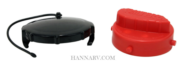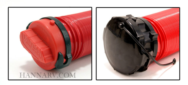 - Red drip cap and black waste valve cap for RV sewer hose helps keep storage compartments clean and dry