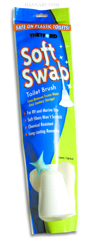 The Thetford 36673 Soft Swab Toilet Brush is a must for making toilet cleaning easy! It is safe for plastics, yet tough on soils. It's durable and reusable. It features a cone that removes excess water, and provides easy sanitary storage!