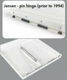 - Fits 14" x 14" Jensen vent with pin-style hinge, pre-1994