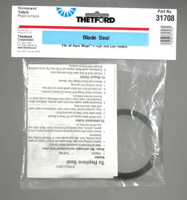 The Thetford 31708 Aqua Magic V Toilet Blade Seal is a replacement part that fits both low and high profile model Aqua Magic V toilets.