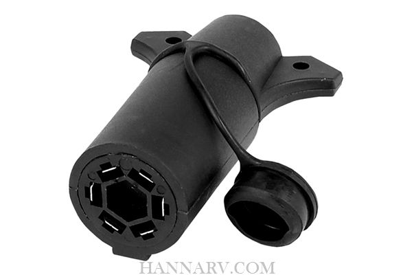 - Male 7-pin round to a female 6-round socket with the center pin for an electric brake.