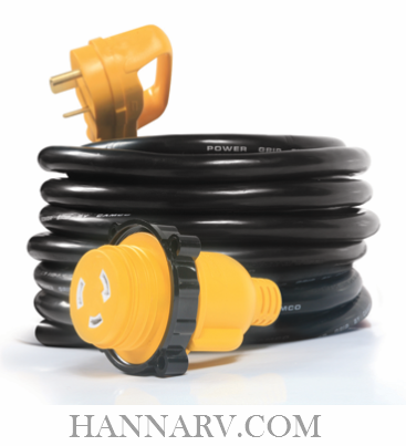 This Camco 55501 25 Foot Cord allows you to hook your marine-style 30 Amp RV power inlet to a standard power source. The threaded locking ring helps to create a weatherproof connection.