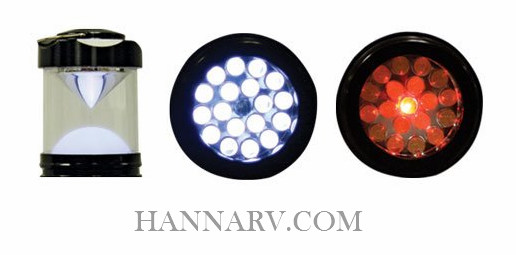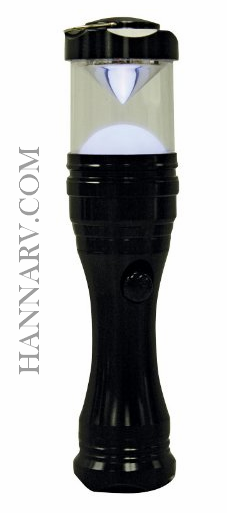 The Voltec Industries 08-00694 3-In-1 LED Camping Lantern serves as a camping lantern, flashlight, and emergency red flashing light. It has a convenient hanging hook, and it features a military aerospace grade aluminum body.