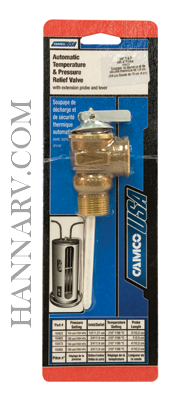 Protect your RV water heater from excessive temperatures and water pressure with the Camco Mfg 10473 Temperature And Pressure Relief Valve. It is factory set at 150 PSI and it is crafted with no gaskets and epoxy-coated probes to prevent corrosion buildup.