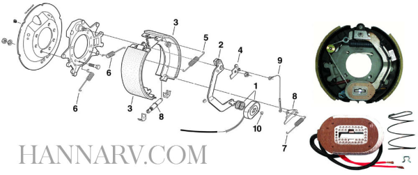 This electric brake actuating arm is a replacement part for 12-1/4'' x 3-3/8'' electric trailer brakes. It is Item #2 in the product image.