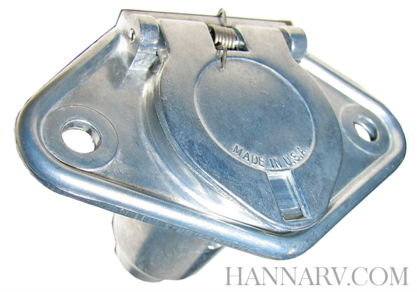 This 4-way Die Cast Trailer Connector is used on agricultural and utility trailers without electric brakes. It features concealed terminals, stainless steel cover spring and finger grips for positive pull. This unit is dust and water resistant, and is interchangeable with other brands of connectors.