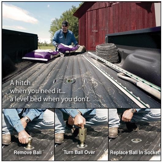 B&Ws Turnover Ball Gooseneck Hitch gives you the versatility you need. It’s a strong hitch when you need it, and it quickly converts to a level bed when you do not. All you have to do to switch from a tow vehicle to a level bed pickup is pull the spring loaded latch pin handle located in the rear wheel opening, lift the ball from the hitch socket, turn it over, replace it in the socket and then re-engage the latch pin. It just takes a few seconds.