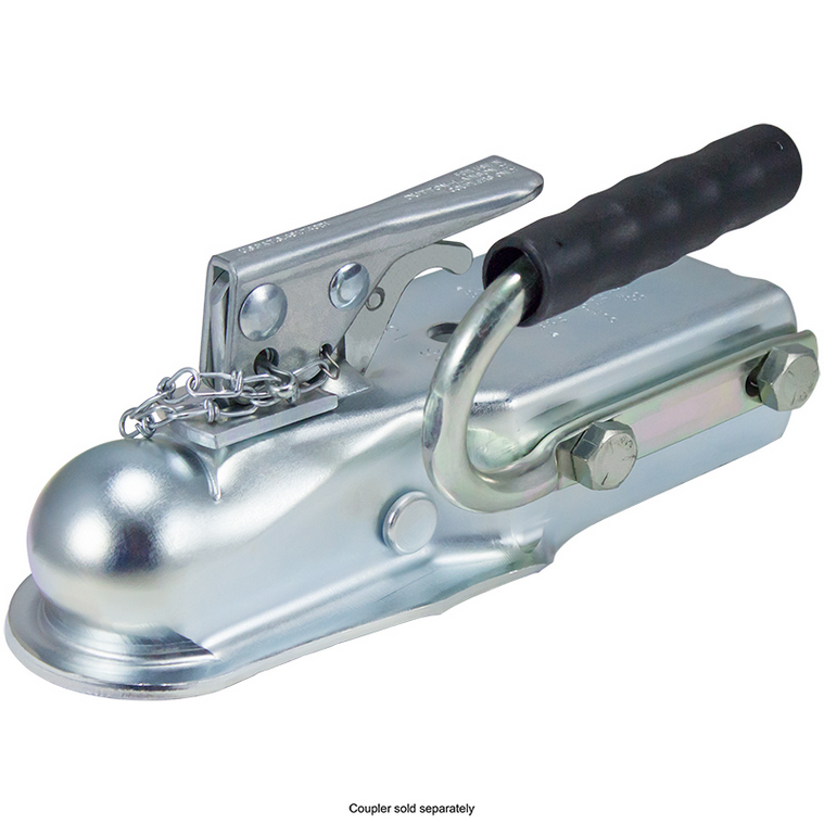 Have you ever tried moving a trailer by holding onto the tongue? This extremely handy Coupler grip provides an easier, cleaner, and safer way to guide your trailer tongue to and from the hitch ball. This trailer coupler grip fits 1-7/8 and 2 inch couplers, by bolting into the side of the coupler using the universal mounting holes. This trailer coupler grip is ideal for personal watercraft and other lightweight trailers. It comes Zinc plated with a TUFFPLATE finish and a large, comfortable hand grip.