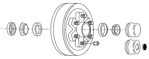 The grease cap on this hub-and-drum assembly is specially designed to work with your Dexter E-Z Lube axle to make lubricating bearings quick and easy. Just remove the plug on the grease cap, attach a grease gun to the zerk fitting on the end of the spindle, and inject the grease. It will flow easily to both inner and outer bearings. Not only does this make lubricating the bearings easy, but it also helps to prevent corrosion of the hub. This is because you can lubricate the bearings without the mess of taking apart the entire assembly.