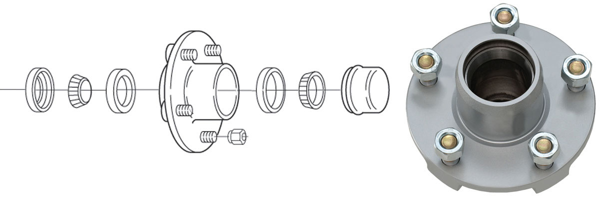 - 5 1/2” diameter hub flange, use with 8” to 12” wheels