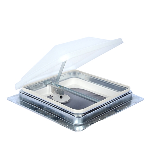 Trailer Dome Vent - M1659VEN - 14 Inch x 14 Inch Crank Out Roof Vent with White Top and Screen