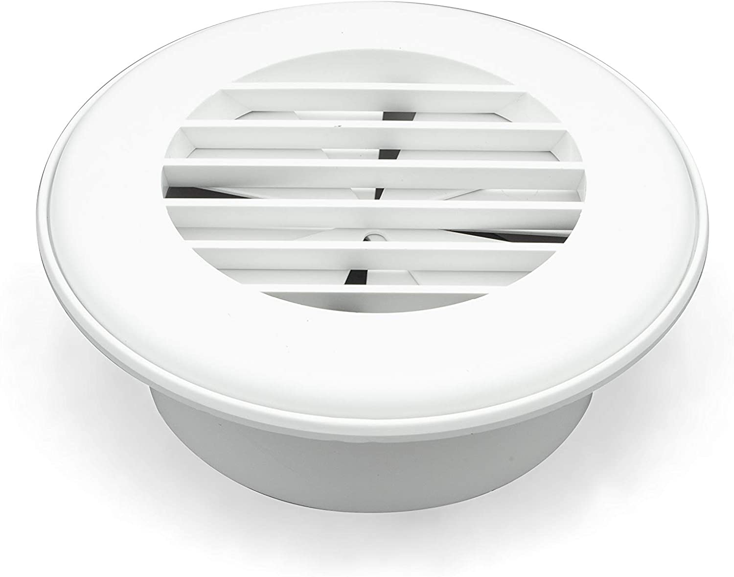 360° rotation provides optimum adjustment of air flow in your RV. High quality round heating and cooling 4 inch vent that will not fade, peel or rust. Smooth, sleek grill hides screws for a finished look. Ceiling Vent is a direct OEM replacement. Polar White.