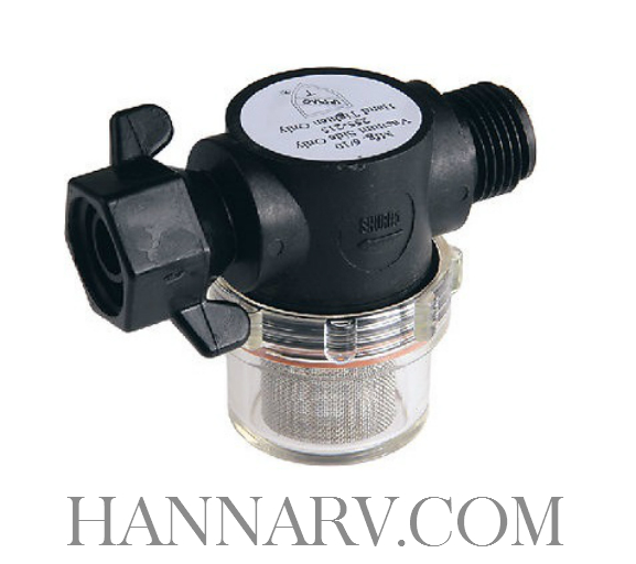 Shurflo Swivel Nut Strainer keeps debris and other bacteria out of the pump, this helps avoid unnecessary repairs. Clear design shows when it is time to clean the bowl. Screws directly on the pump head and it’s easy to disassembly to clean.