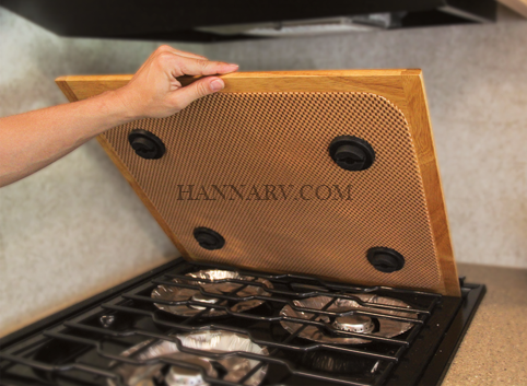 Silence annoying stovetop rattles and add valuable counter space to your RV with this Camco stovetop cover.