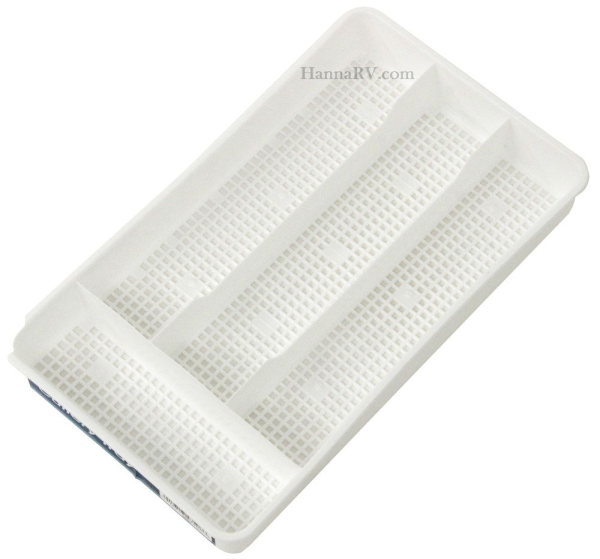 The Camco 43508 White Compact Cutlery Tray fits easily into RV drawers to keep your flatware organized. It is compact and it measures 7 inches x 11 inches x 1.55 inches deep.