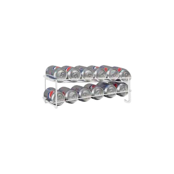 The AP Products 004-259 Canned Beverage Dispenser holds up to 12 cans that load easily from the front. As one can is removed, the others roll forward for easy reach. The dispenser also has a handy top shelf for additional storage. It is cushion-coated and washable. It measures 7 inches x 6 inches x 12 inches.