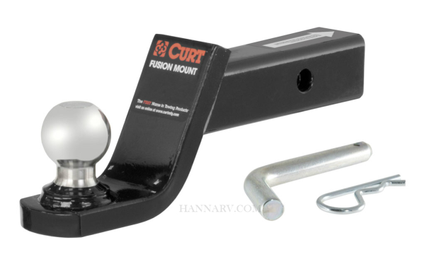 This particular Fusion mount features a gross trailer weight capacity of 7,500 lbs. and a tongue weight rating of 750 lbs. It measures 8 1/8 inches long, has 4 inches of drop and comes with a 2 inch diameter trailer ball. CURT Fusion ball mounts are great for towing most standard size trailers, including utility trailers, livestock trailers, boat trailers and campers (NOTE: Never exceed the lowest weight capacity of any towing component; i.e. the vehicle, hitch, trailer, etc). Each unit is robotically welded to ensure accurate, consistent cuts and clean, strong weld lines. Once welded, these ball mounts undergo a cleaning process that creates a flawless surface for the application of our highly durable gloss black powder coat finish for long-lasting resistance to corrosion and chipping.