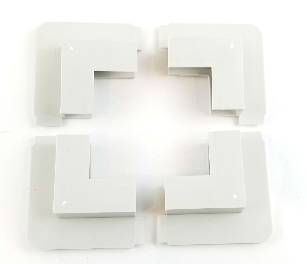 This listing is for a quantity of 4 plastic door corner caps for enclosed cargo trailers. They are gray in color.