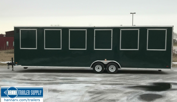 "The Shooting Shack" - Custom Order 8.5 X 32 Five Stand Shooting Trailer - Cargo Green