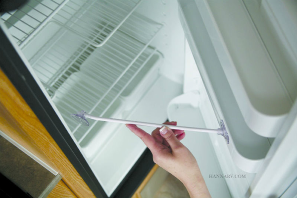 Keep your refrigerator door held open during storage with the Camco 45641 Refrigerator Door Stay. White in color, this door stay improves air circulation and helps prevent mold and odor build-up in your RV fridge.