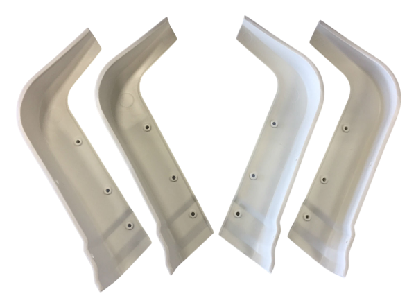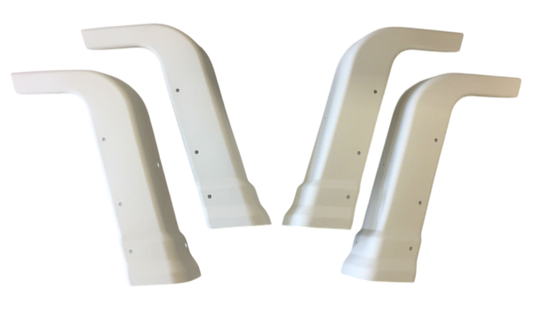 The corner caps fit Rockwood, Flagstaff and other Forest River campers. These replacement roof corners are new and are white plastic. The replacement pop up camper roof corners may fit other pop up campers as well. This is a set of 4 (2 left and 2 right) - enough to replace the corners on 1 pop up camper roof.