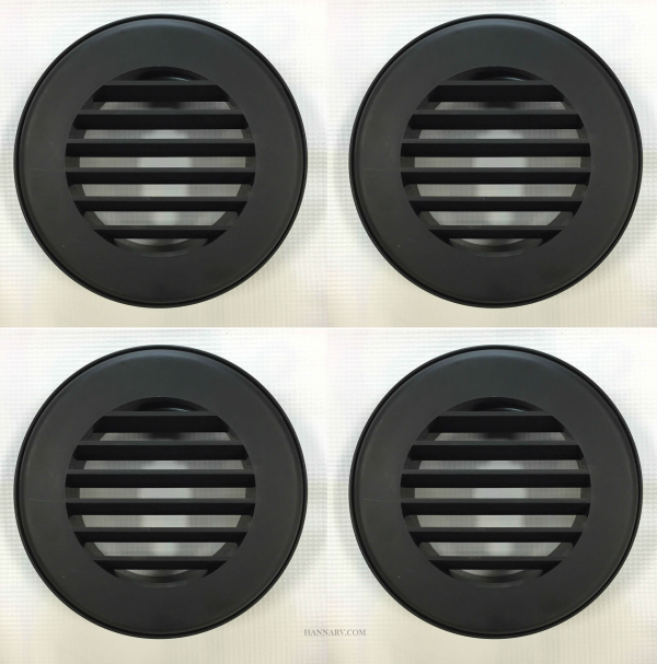 This listing is for four Black Round RV Furnace Wall Register Vents.