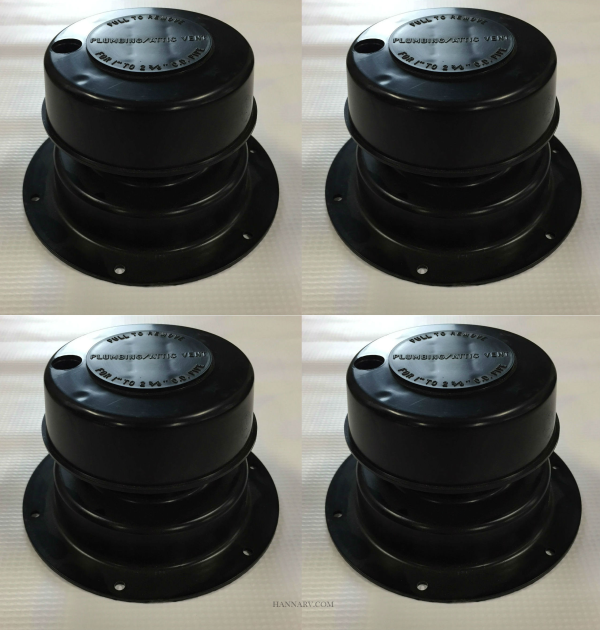 This listing is for four Black RV Plumbing / Attic Vents. They fit 1" to 2-3/8" Outer Diameter Pipe.