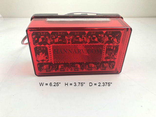 This listing is for one Karavan 205-00161-NA Left Hand LED Submersible Tail Light. The polycarbonate lens and housing unit contains 12 LEDs and mounts horizontally. Mounting hardware is included and the light comes with pre-installed 25" wire leads.