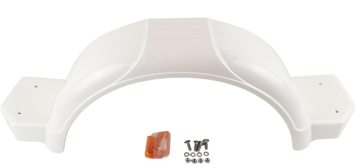 This listing is for one Shorelander SK0120-01 Left White Poly Fender Kit for 13" Tires. The fender (6199701) measures 9 inches wide. Amber clearance light is included.