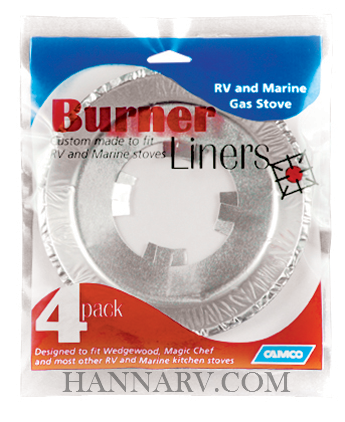 Keep RV stovetop burners clean and hide pitted or rusted burner wells with the Camco 43800 Gas Stove Burner Liners. They make clean-up easier, and they fit Wedgewood, Magic Chef and most other RV gas stoves. The liners measure 7-1/2 inches diameter, and they are easy to install. There are 4 Burner Liners included per package.