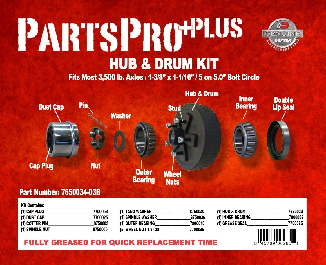 This listing is for one Pregreased Hub & Drum Kit for 3500 Lb Axles with a 5 on 5 bolt pattern and a 1-3/8" x 1-1/16" #84 spindle.