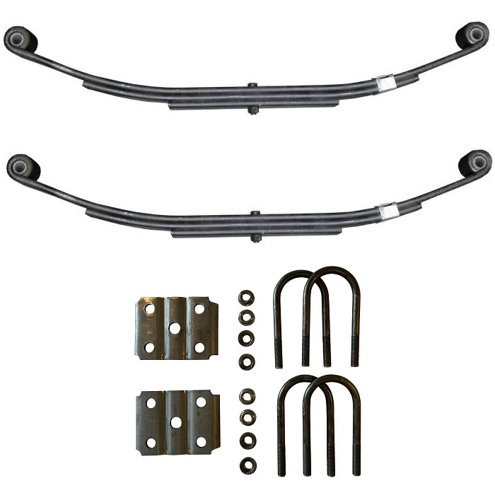 Replace worn or broken leaf springs on 3,500 lb round trailer axles with this double eye 3 leaf spring kit.