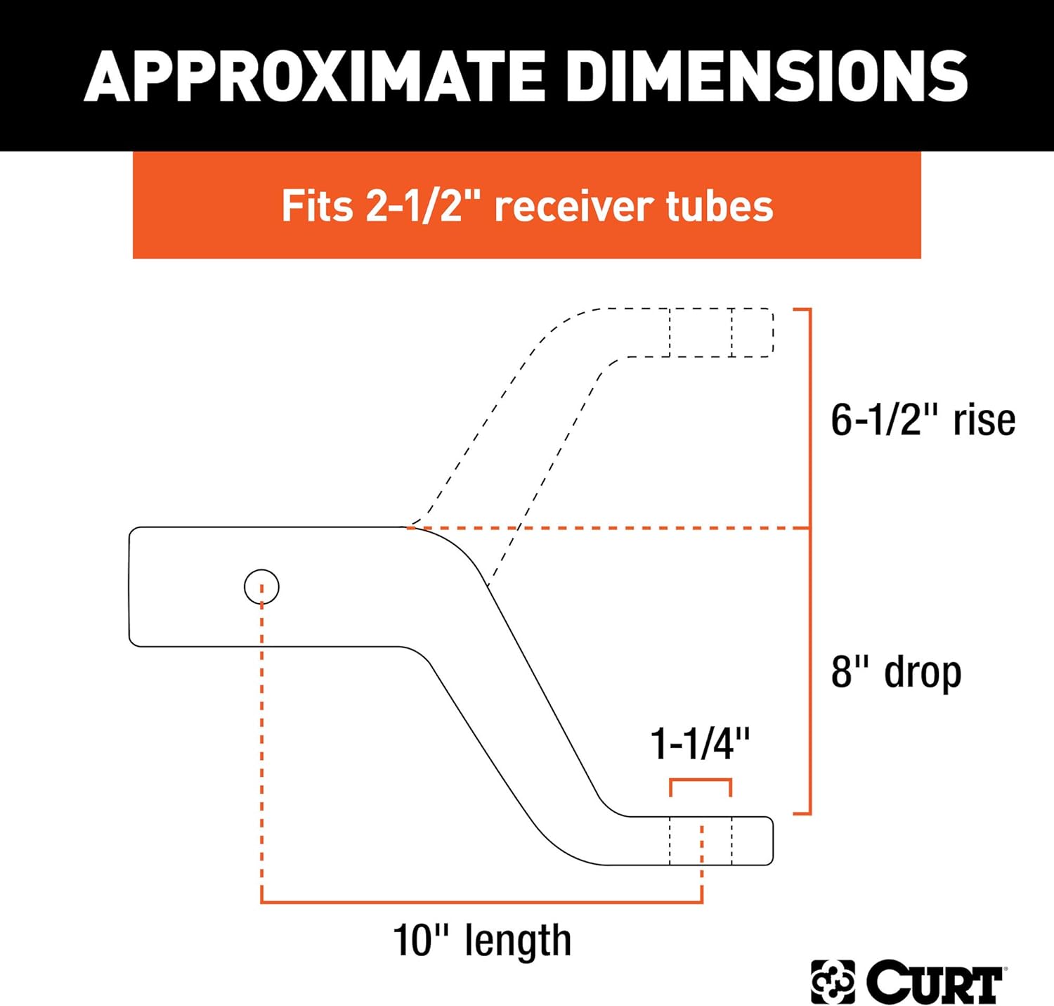 - Fits trailer hitches with a 2-1/2" x 2-1/2" receiver tube opening