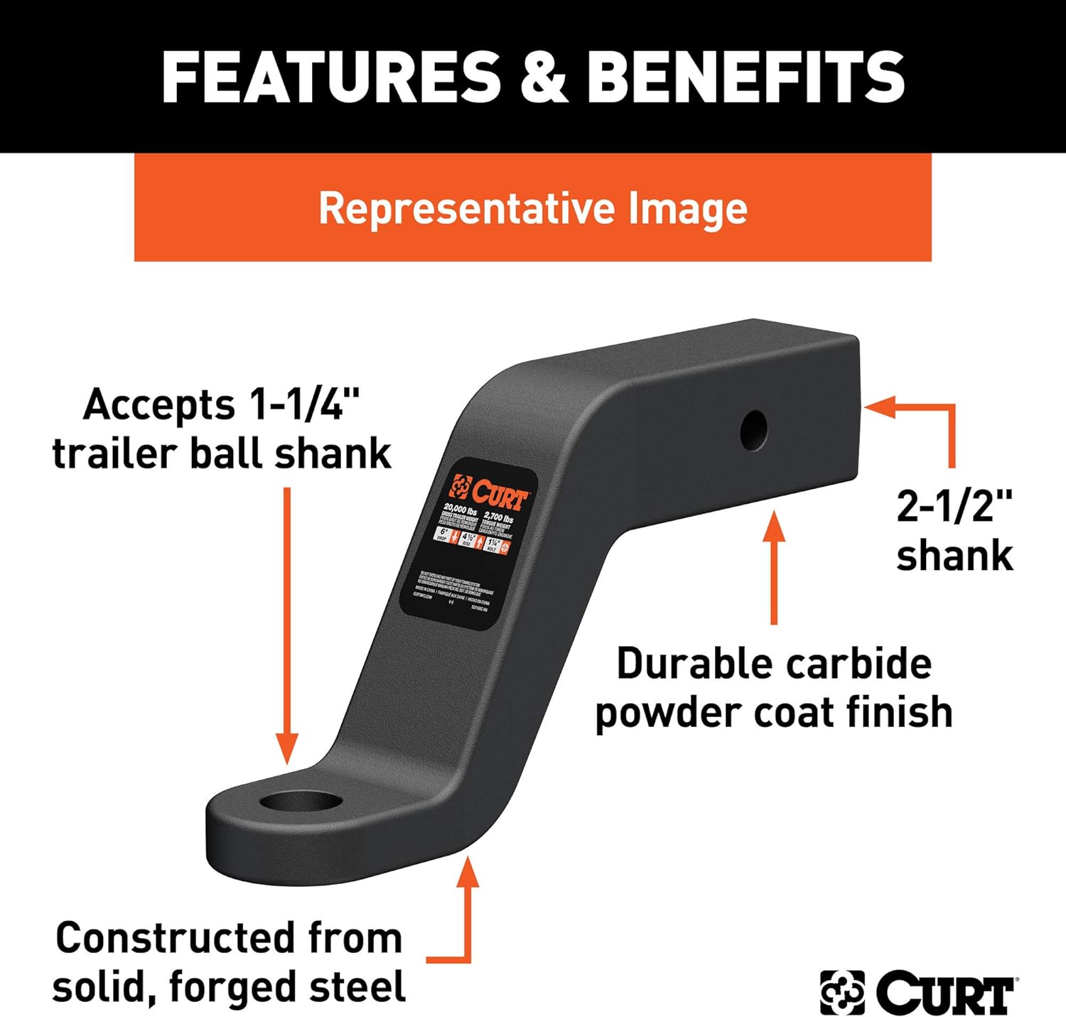 Curt 45460 Commercial Duty Forged Ball Mount 2-1/2" Shank- 20,000 lbs- 8" Drop