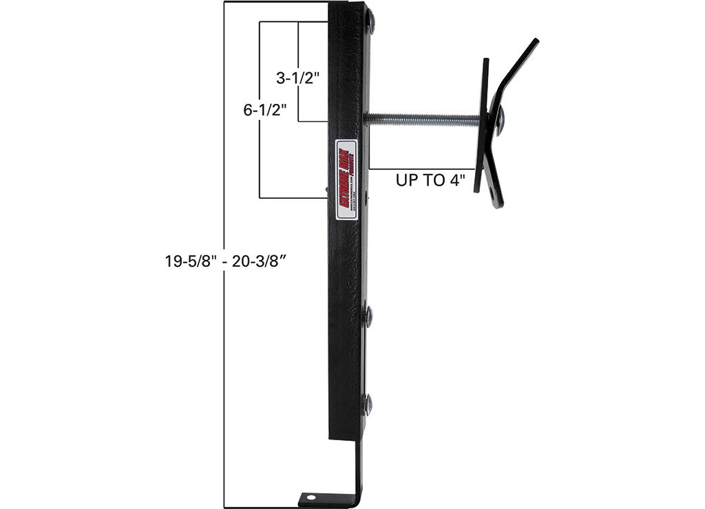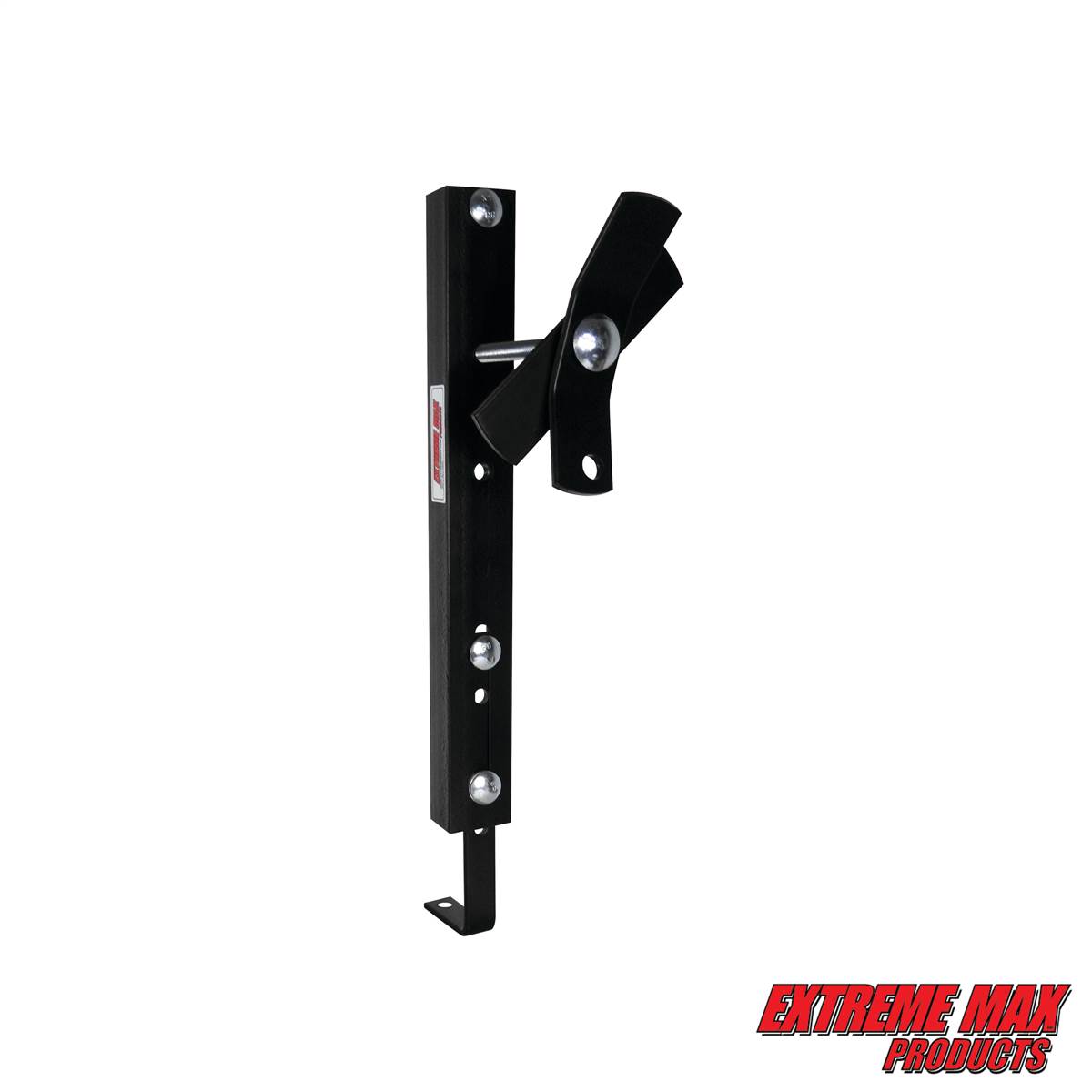 The Extreme Max In-Bed Spare Tire Mount provides excellent versatility when it comes to carrying your spare in the bed of your pickup truck while eliminating the bouncing and rolling experienced when carrying a loose spare. The universal design mounts nearly anywhere in your truck's bed and adjusts its height to match both the bed's sidewall and the tire size. While mounted the tire sits vertically against the sidewall, keeping much of the floor open and ready to take on more cargo. After its initial installation, no tools are required while storing or removing your tire from the mount as its unique winged wheel plate provides all the leverage needed to unscrew the lug bolt. The mount features a sleek black powder coat finish to protect it from the elements and locking holes to secure the tire with a cable lock if desired (lock sold separately). Note: Do not install the carrier in aluminum truck beds.