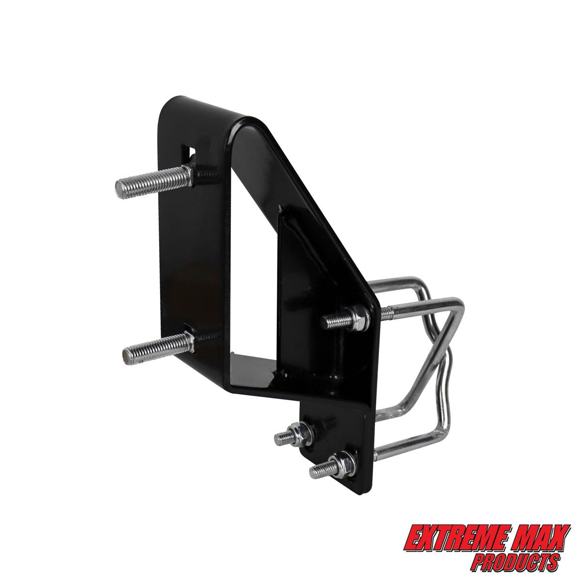The Extreme Max 5001.5837 Heavy-Duty Offset Spare Tire Carrier is a versatile, side-mount carrier designed for use on trailer frames up to 3.5" wide x 4" tall. Its minimalistic design allows the tire to sit close to the trailer frame while providing a 5" lift for added ground clearance. Finished with a sleek, black powder coat, the heavy-duty carrier features a steel construction that provides excellent strength and resistance to rust and corrosion, keeping your trailer looking great. The carrier fits most four and five-lug 12", 13", 14" and 15" spare tires. Includes two M12 x 1.75 x 45 studs.
