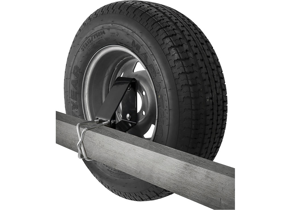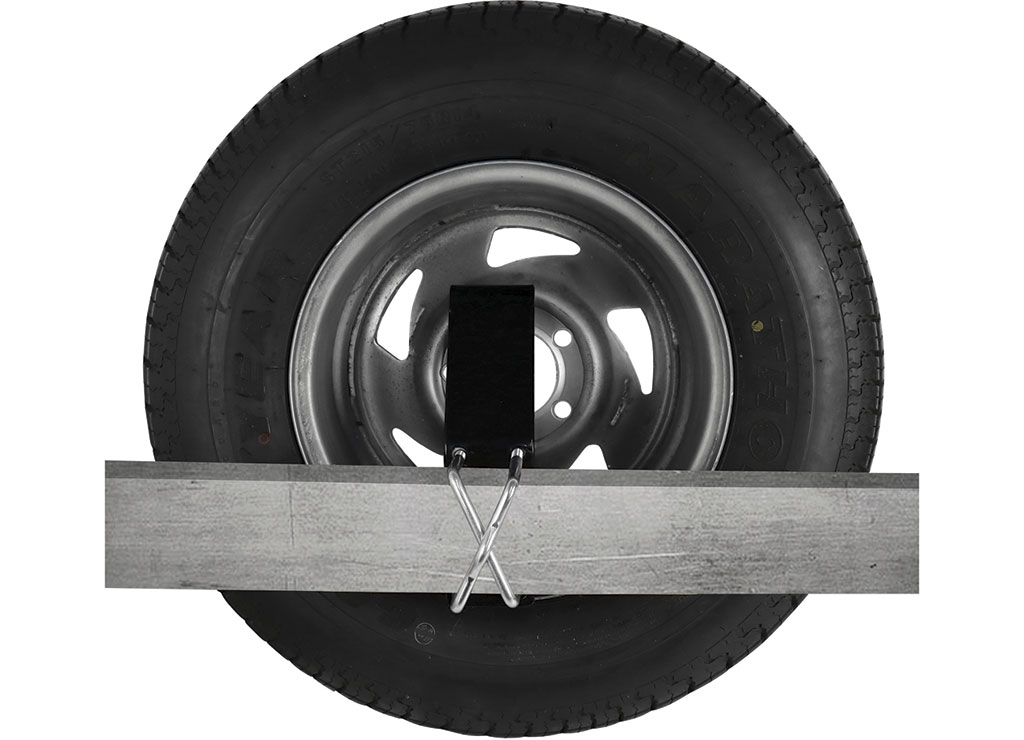 - Holds the tire close to the trailer frame, provides 5" lift for added ground clearance