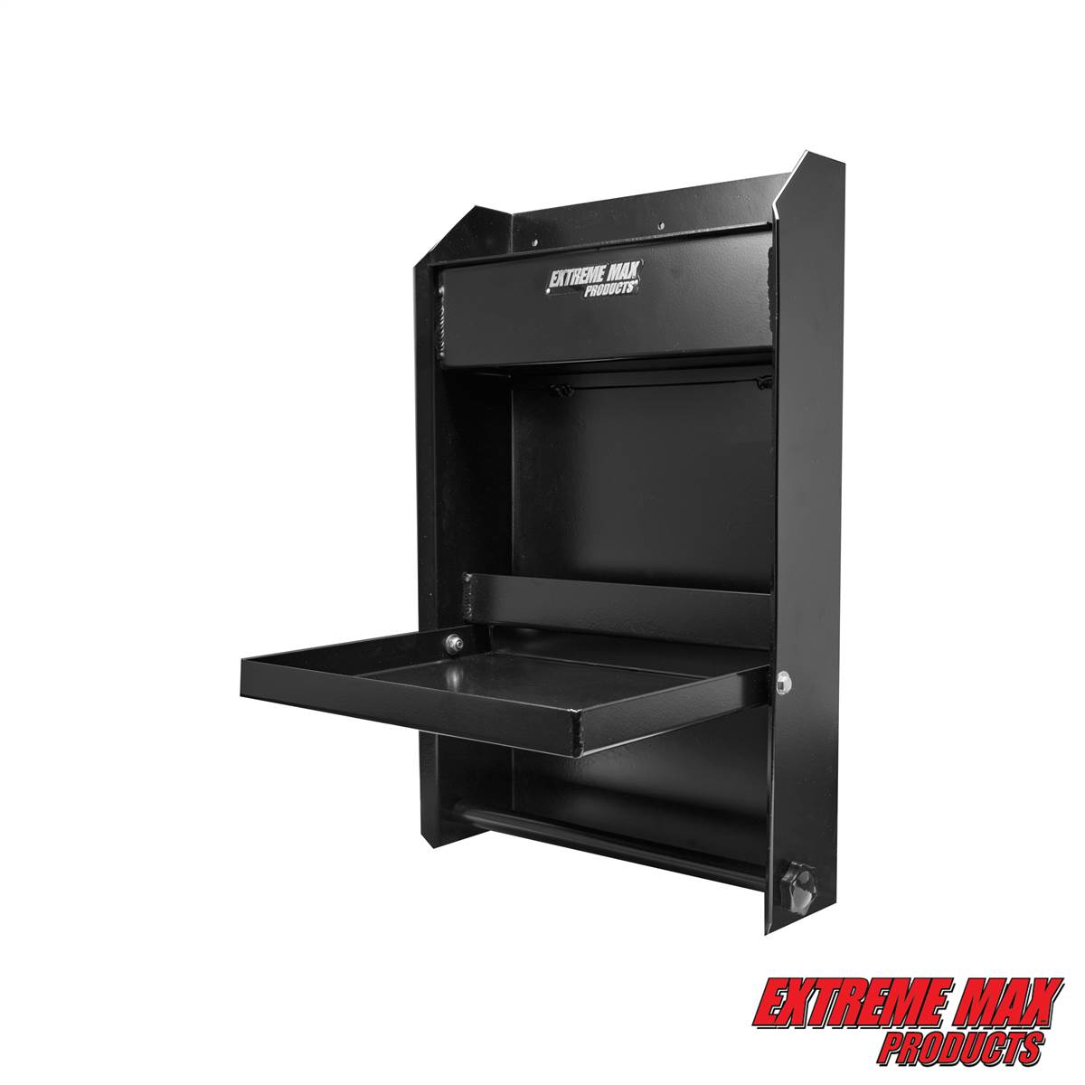 Extreme Max 5001.6119 Junior Wall-Mount Aluminum Work Station Storage Cabinet Flip-Out Work Tray with Paper Towel Rack Organizer for Enclosed Race Trailer Shop Garage Storage - Black