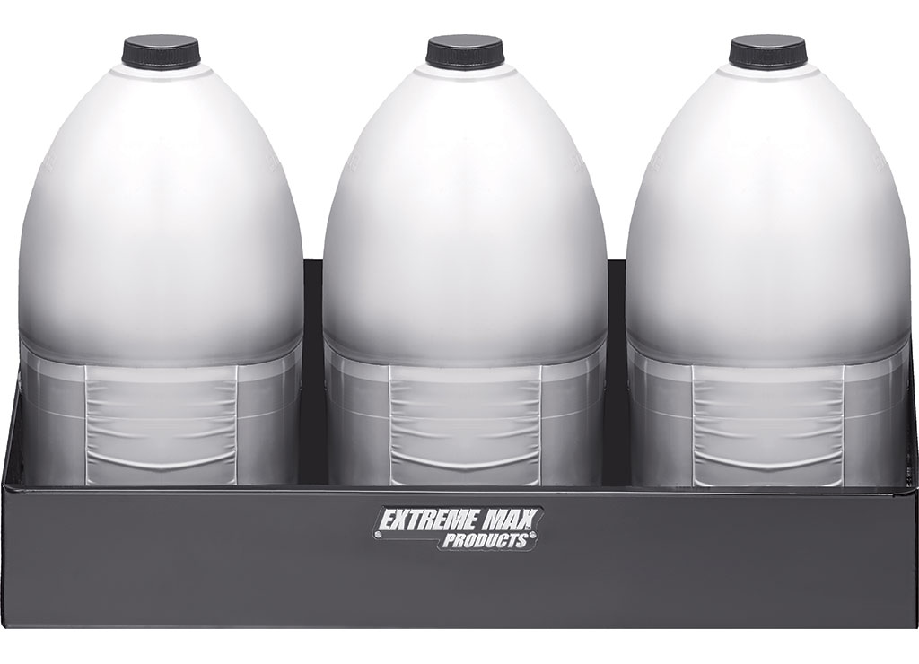 Extreme Max 5001.6159 Wall-Mount Aluminum 4-Quart Liquid Storage Shelf for Race Trailer, Garage, Shop, Enclosed Trailer, Toy Hauler - Holds Four 1-Quart (32 oz.) Bottles, Black