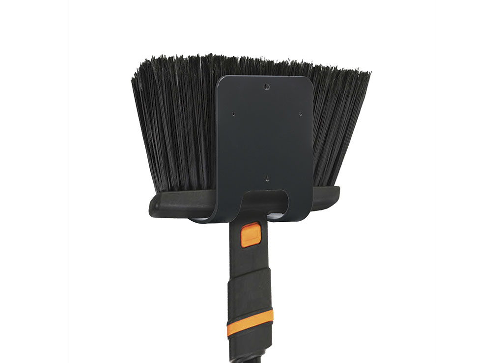 - Minimalist design keeps the broom tight against the wall, taking up as little space inside the trailer as possible