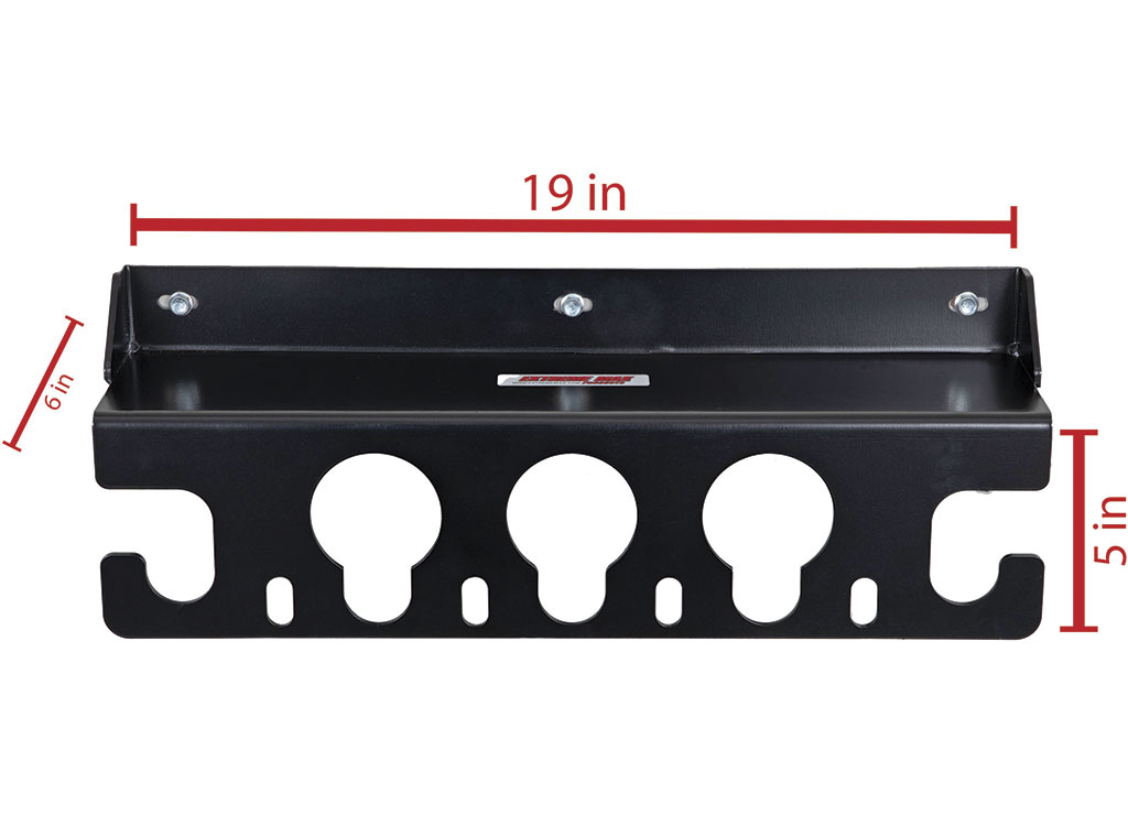 Store up to five 2" receivers with the Extreme Max 5001.5889 5-Slot 2" Receiver Rack! The rack mounts to a wall and holds your receivers by the hitch balls, keeping them off the floor and at the ready for the next time you need them. Includes three lag screws for easy installation. The receiver rack is designed to be mounted to a minimum of two wall studs or a reinforced wall surface. Should your wall studs not align with the outer two mounting holes, span a board horizontally between the wall studs to provide a sturdy surface for the receiver rack.